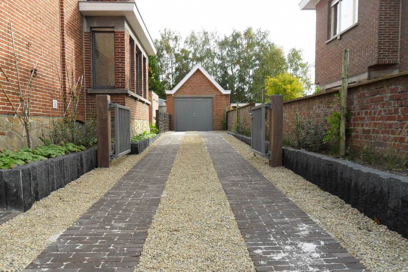 Deze voortuin is ontworpen in functie van enerzijds het esthetische aspect en anderzijds het praktische aspect. Er is namelijk een groot hoogteverschil tussen de woning en de openbare weg. Wij vonden het belangrijk om op deze kleine oppervlakte toch een extra dimensie te creëeren door middel van het werken met verschillende materialen en beplanting. Vorige pagina